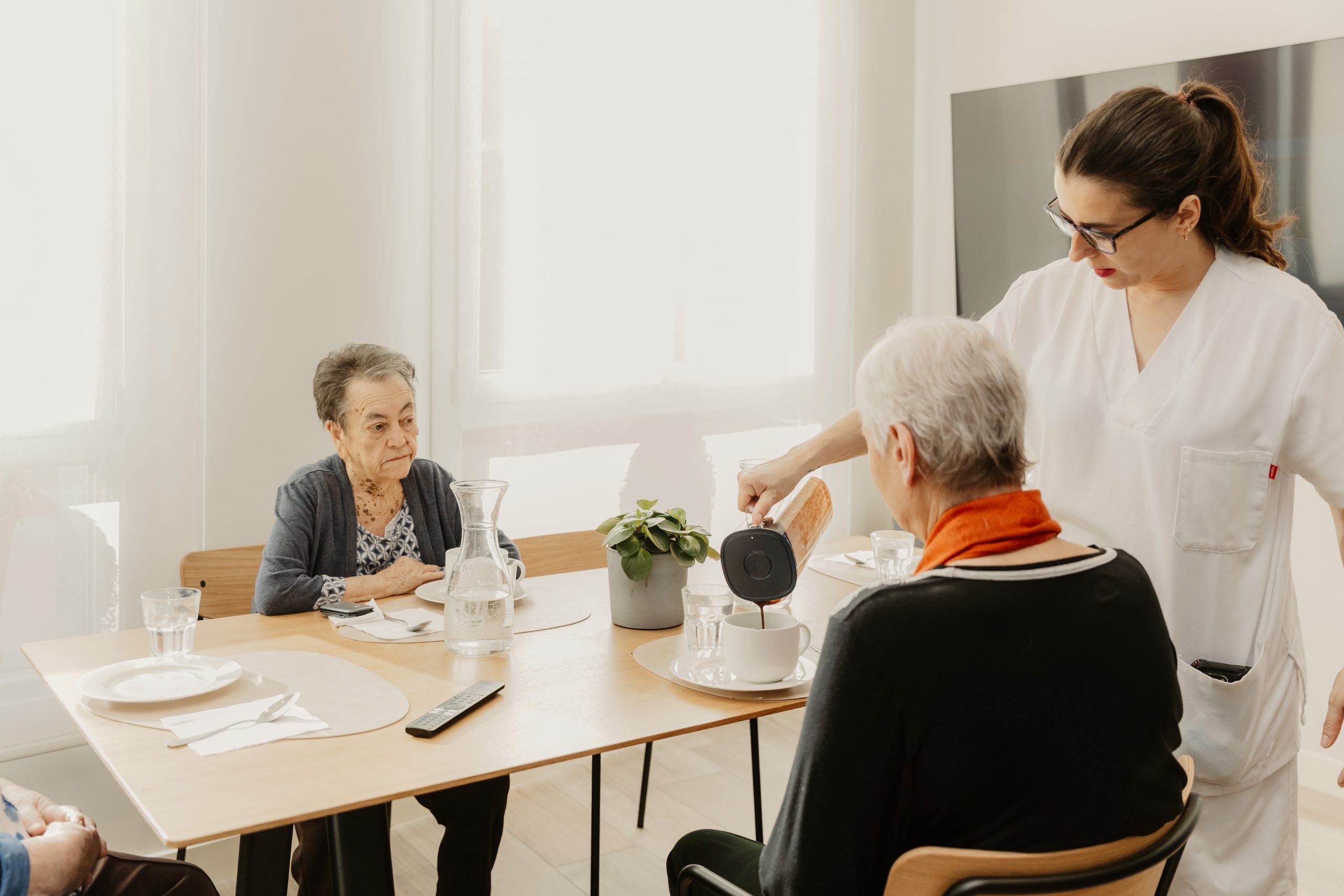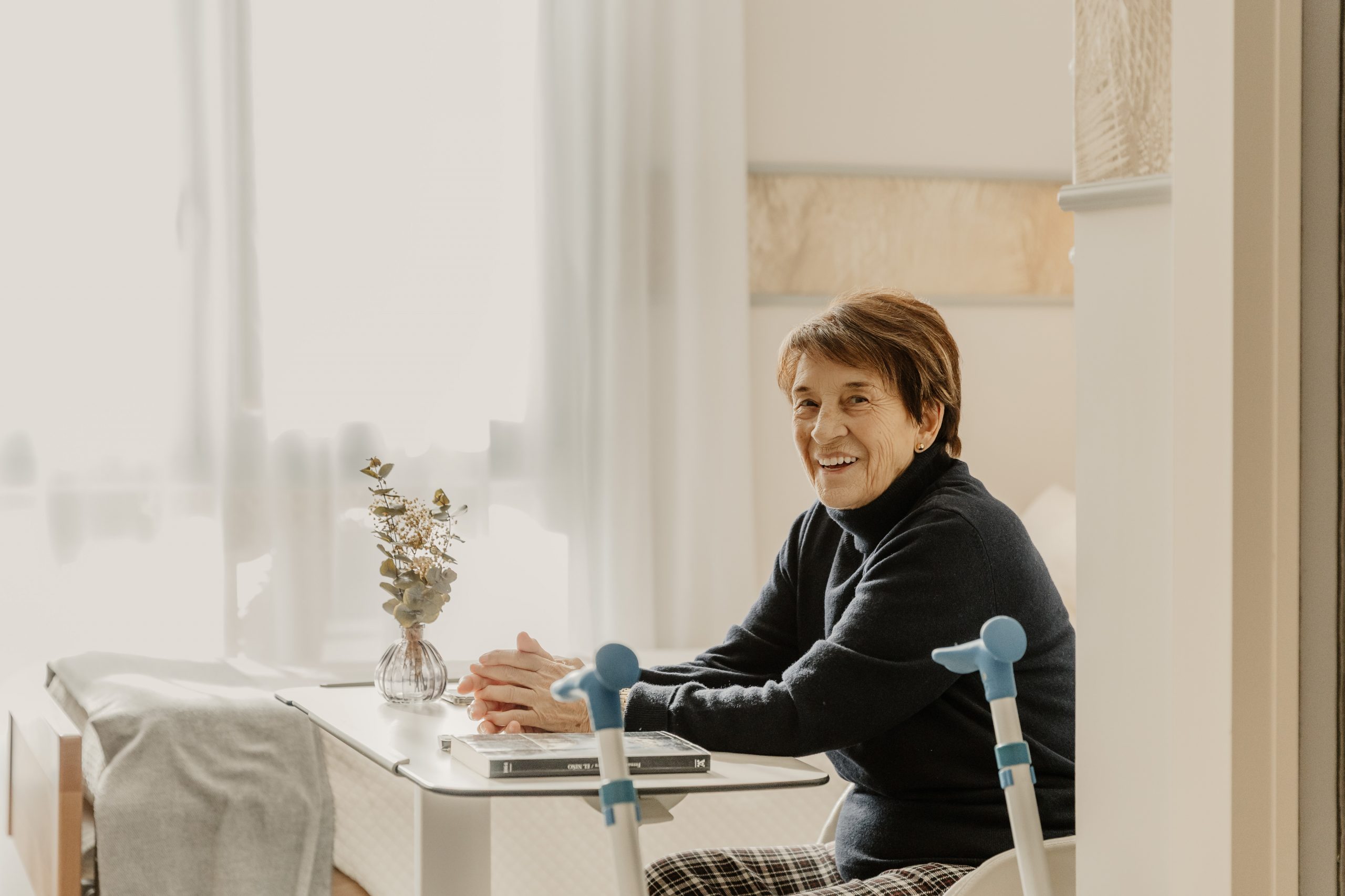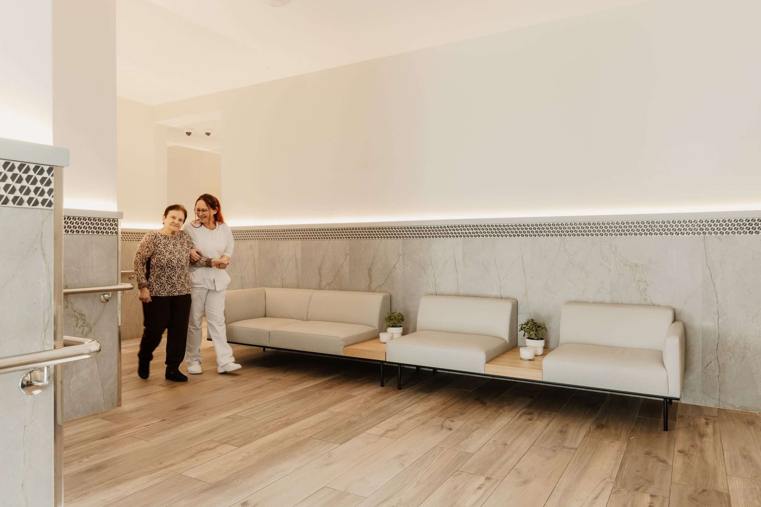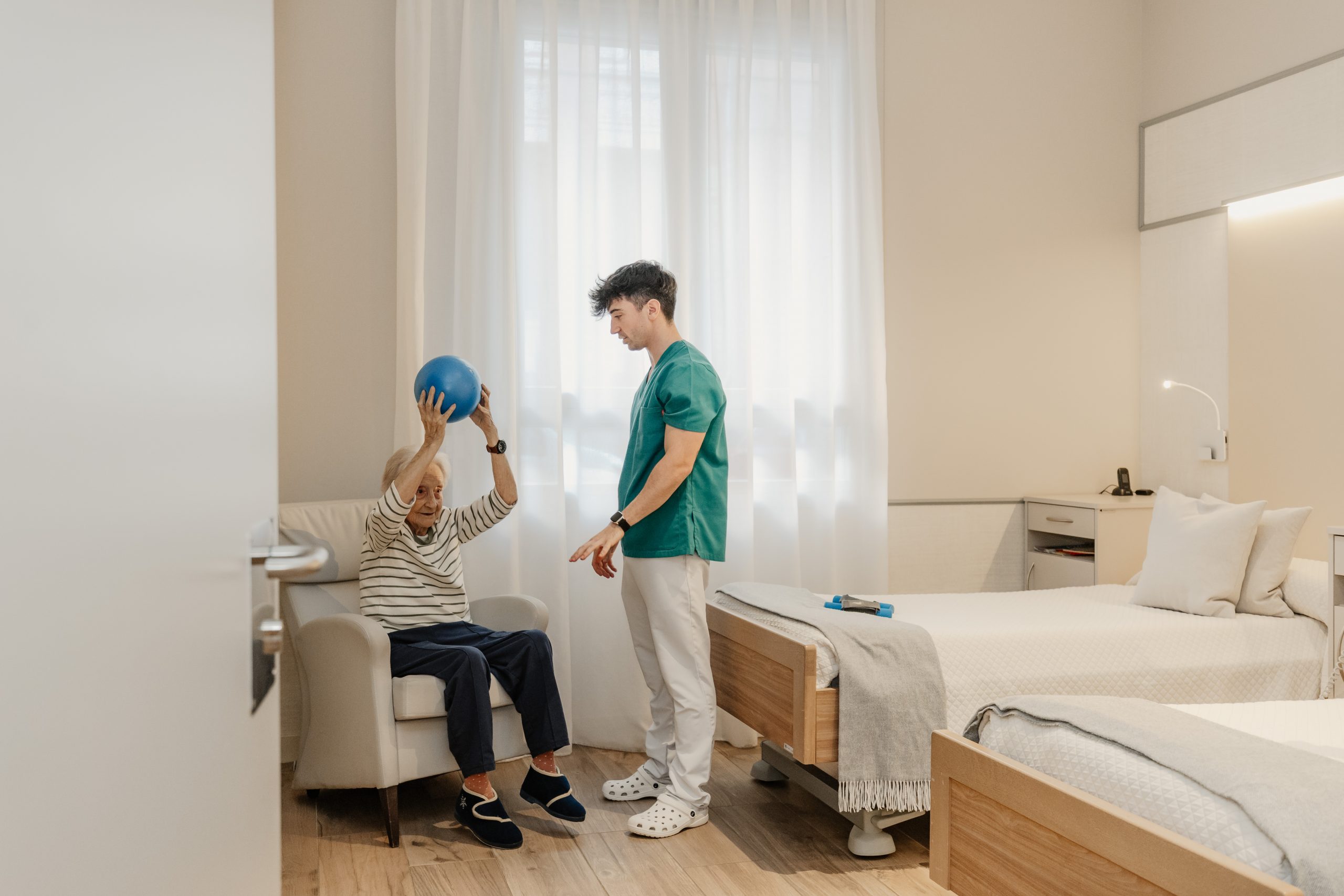 Habitaciones Confortables y Personalizables: Al igual que en un «care hotel», nuestros residentes disfrutan de habitaciones individuales y dobles, decoradas al detalle, equipadas con baño adaptado y tecnología domótica avanzada, que incluye sistemas de llamada paciente-enfermera de última generación, cama articulada alta gama (cuota 0), control de errantes mediante cámara de reconocimiento facial, sensores de deras detección de caídas, televisión HD 50’’, frigorífico, control inteligente de iluminación y temperatura, y otras funcionalidades innovadoras diseñadas para garantizar la seguridad, la comodidad y promover la independencia de nuestros residentes.