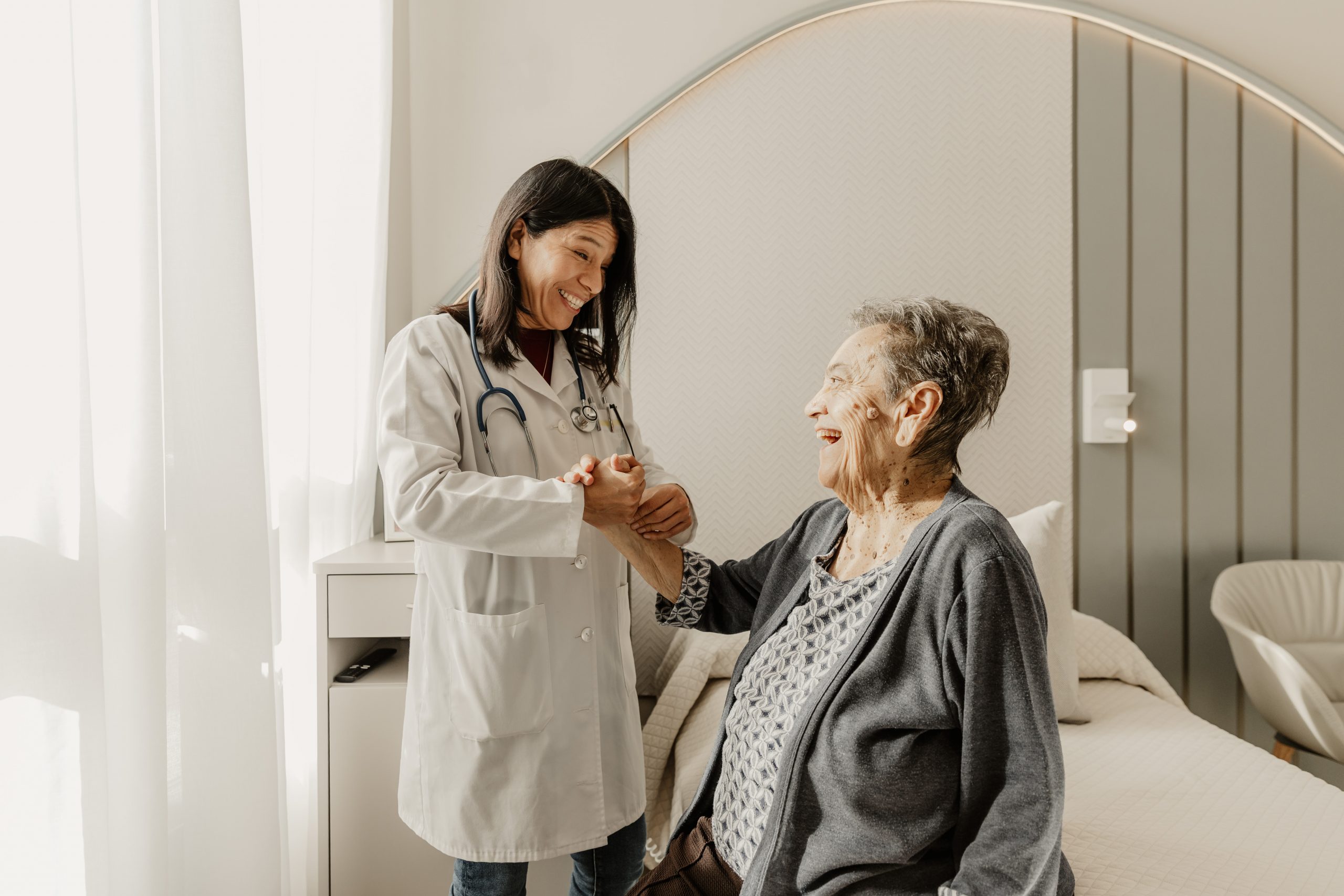 Nuestras habitaciones individuales y dobles, personalizables para reflejar el gusto de cada residente, están equipadas con baño geriátrico completo y tecnología domótica de última generación, incluyendo sistemas avanzados de llamada paciente-enfermera, control de errantes y detección de caídas. Este equipamiento, junto con camas articuladas de alta gama y televisión HD, ofrece un confort similar al de un hotel de alta categoría, garantizando seguridad y promoviendo la independencia.